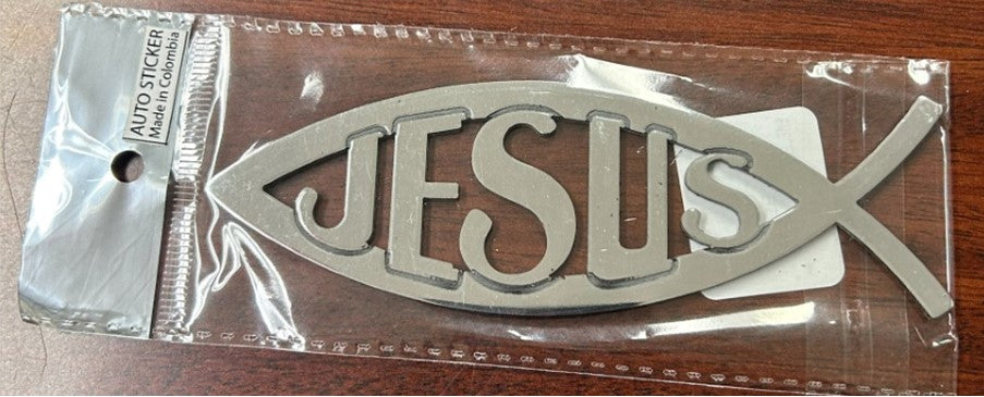 -Emblema con diseño de pez Jesús en color plateado para pegar.