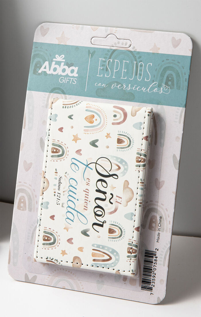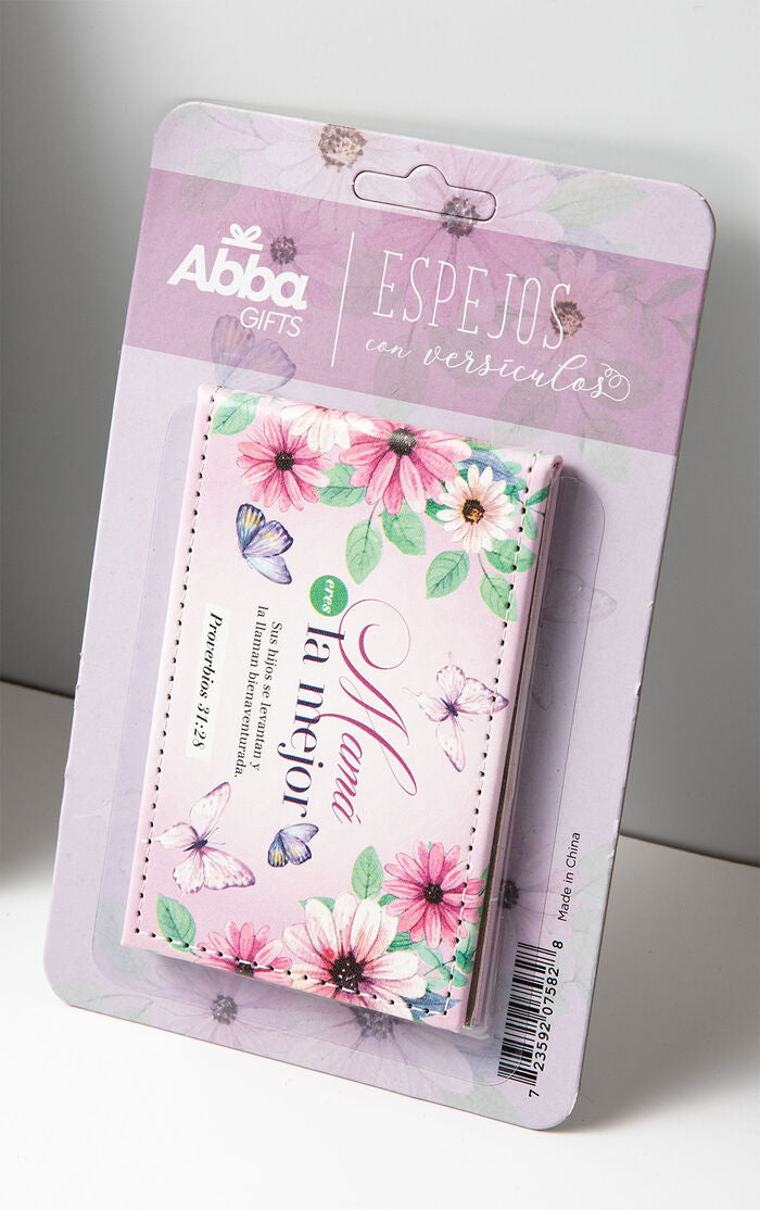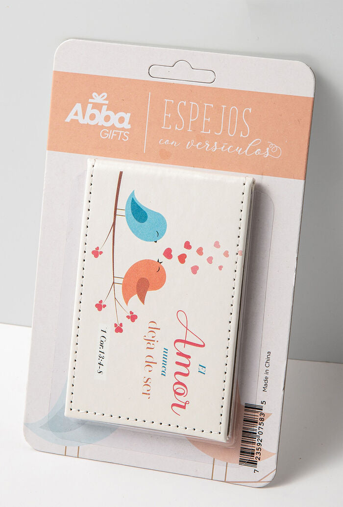 -Estos espejos de imitación piel llevan inscritos versículos bíblicos. Vienen en un empaque elegante ideal para regalar. Variedad de diseños.
