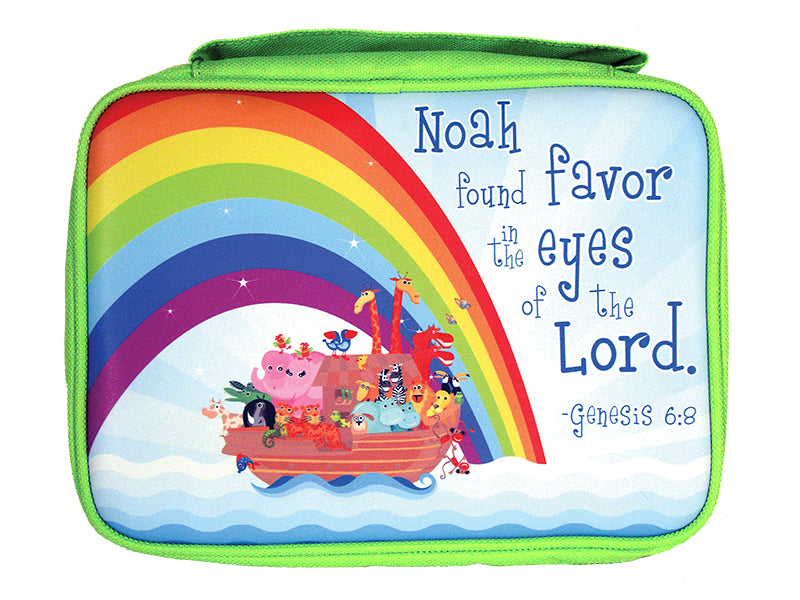 -Forro para la Biblia de los niños. Hermosa y colorida portada con el diseño del Arca de Noé y el Arcoiris. Permita que su hijo se embarque en una aventura llena de fe con la cubierta de la Biblia para niños del Arca de Noé. Con su diseño cautivador y el mensaje sincero de Génesis 6:8, sirve como un suave recordatorio de la gracia y el amor de Dios.