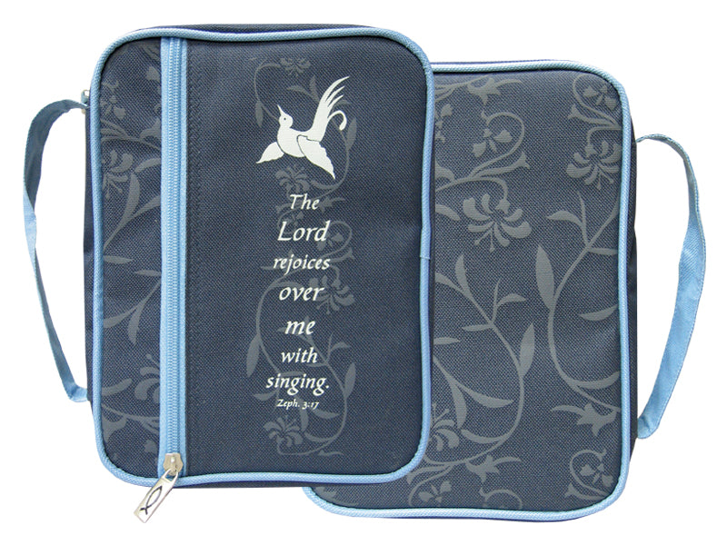 La cubierta es de color azul mezclilla, y presenta un diseño de una paloma con el texto de Sofonías 3:17 en blanco con detalles en azul claro que hace que la cubierta se destaque. El diseño es sutil pero poderoso, y será un recordatorio constante de su fe e inspiración.