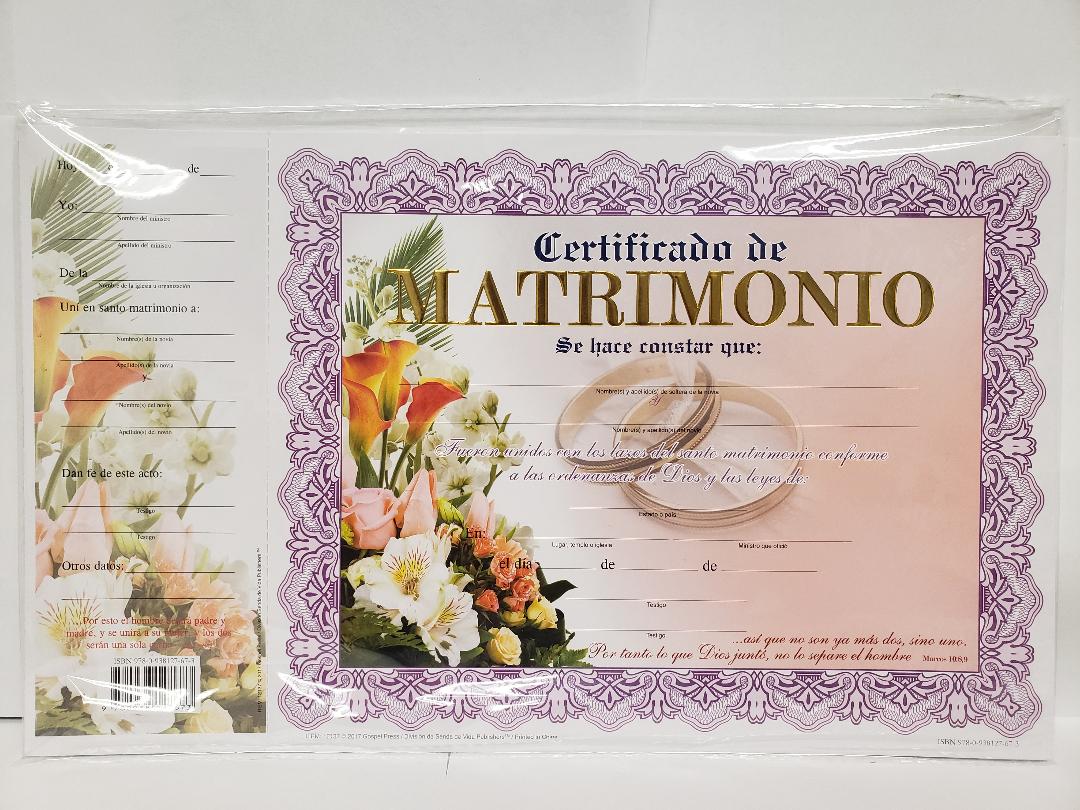 -Libreta de 15 Certificados de Matrimonio con su talonario de registro.