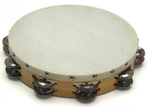 -Pandera de madera con cuero de 10" con una línea o dos de chapas de metal.